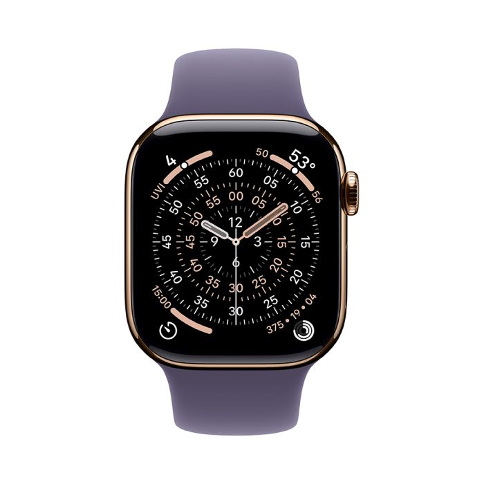 Apple Watch Series 11, 42 mm, Gold Titanium GPS+Cellular, Purple Fog Sport Band M/L
