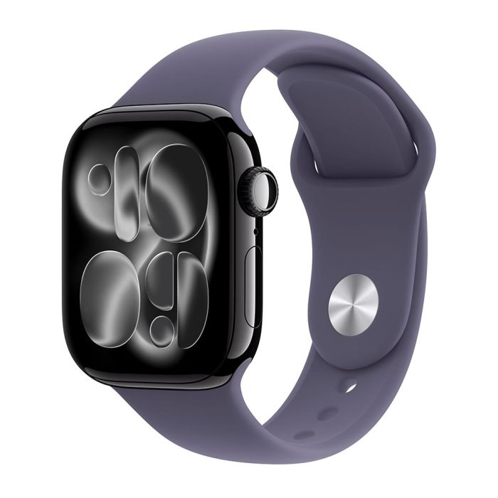 Apple Watch Series 11, 42 mm, Jet Black Aluminum Purple Fog Sport Band M/L