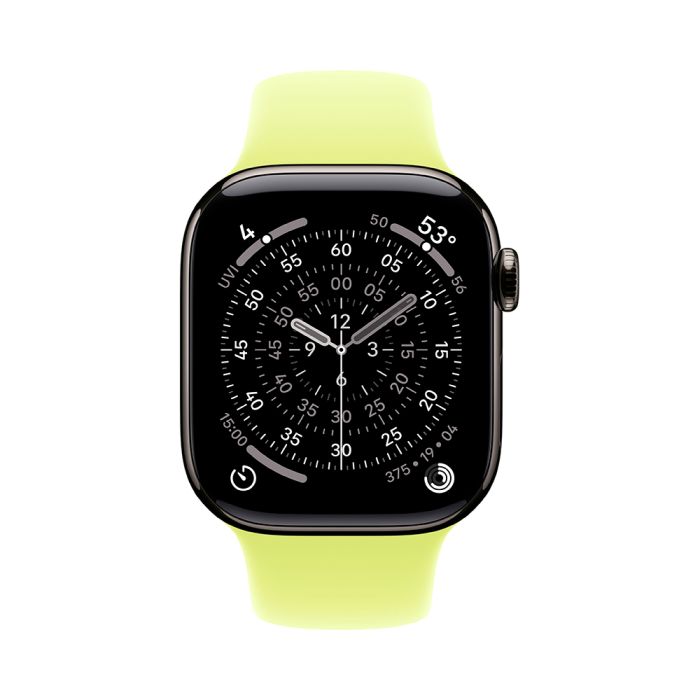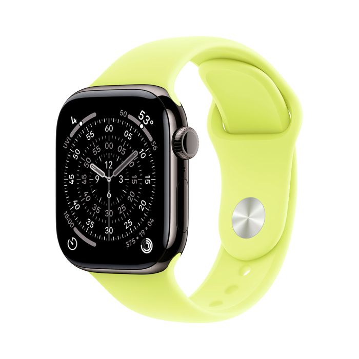 Apple Watch Series 11, 42 mm, Slate Titanium GPS+Cellular, Neon Yellow Sport Band S/M