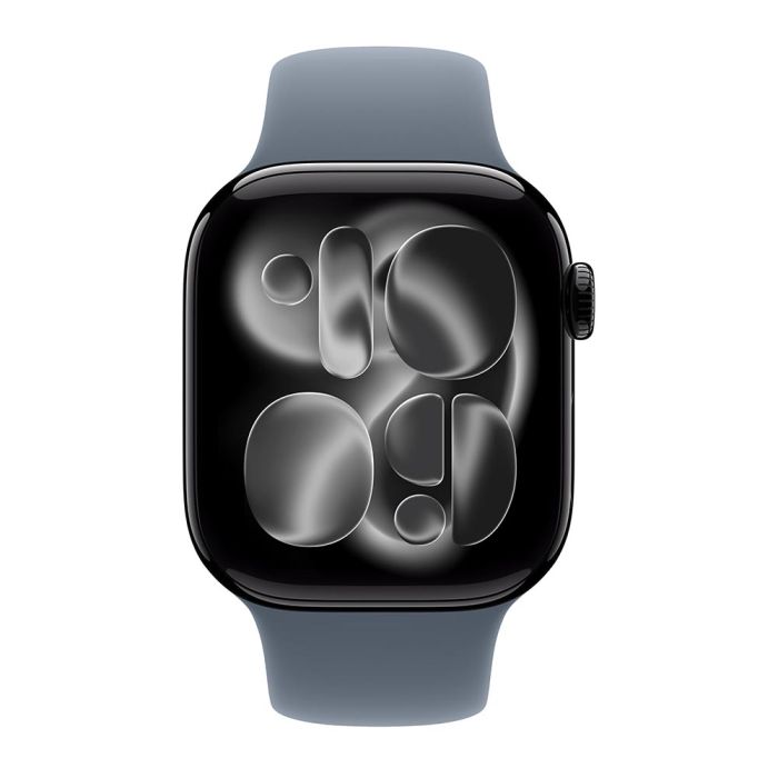 Apple Watch Series 11, 46 mm, Jet Black Aluminum Anchor blue Sport Band M/L